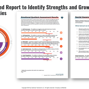 The participant receive a robust, personalized report with their individual scores on the key domains and comparison to normative data from the general population. The report also includes personalized strategies for building up their emotional intelligence, helping participants put it into action quickly.